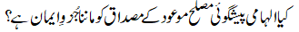 "Is it a part of faith to believe in the inspired prophecy of the promised reformer?"